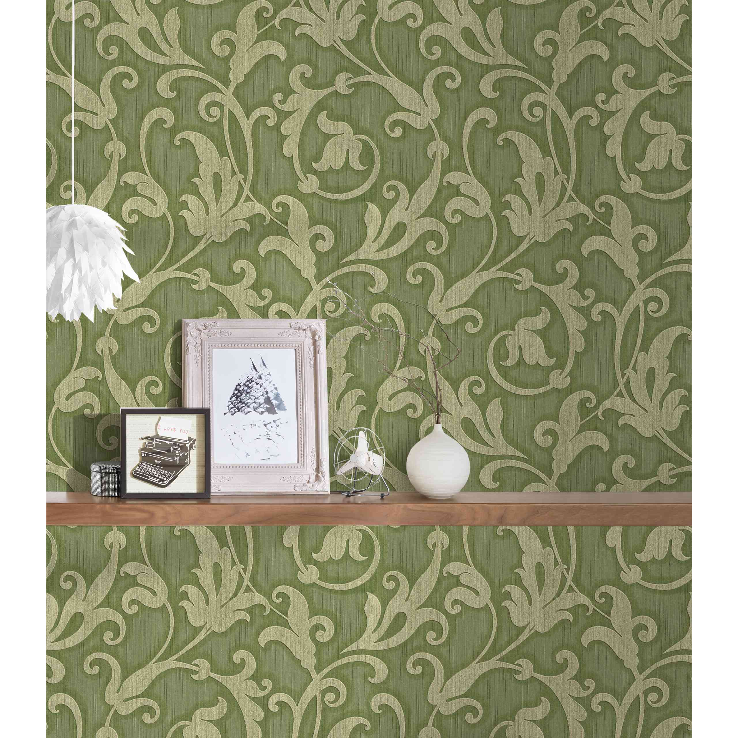 - Farbe der Tapete: Grün