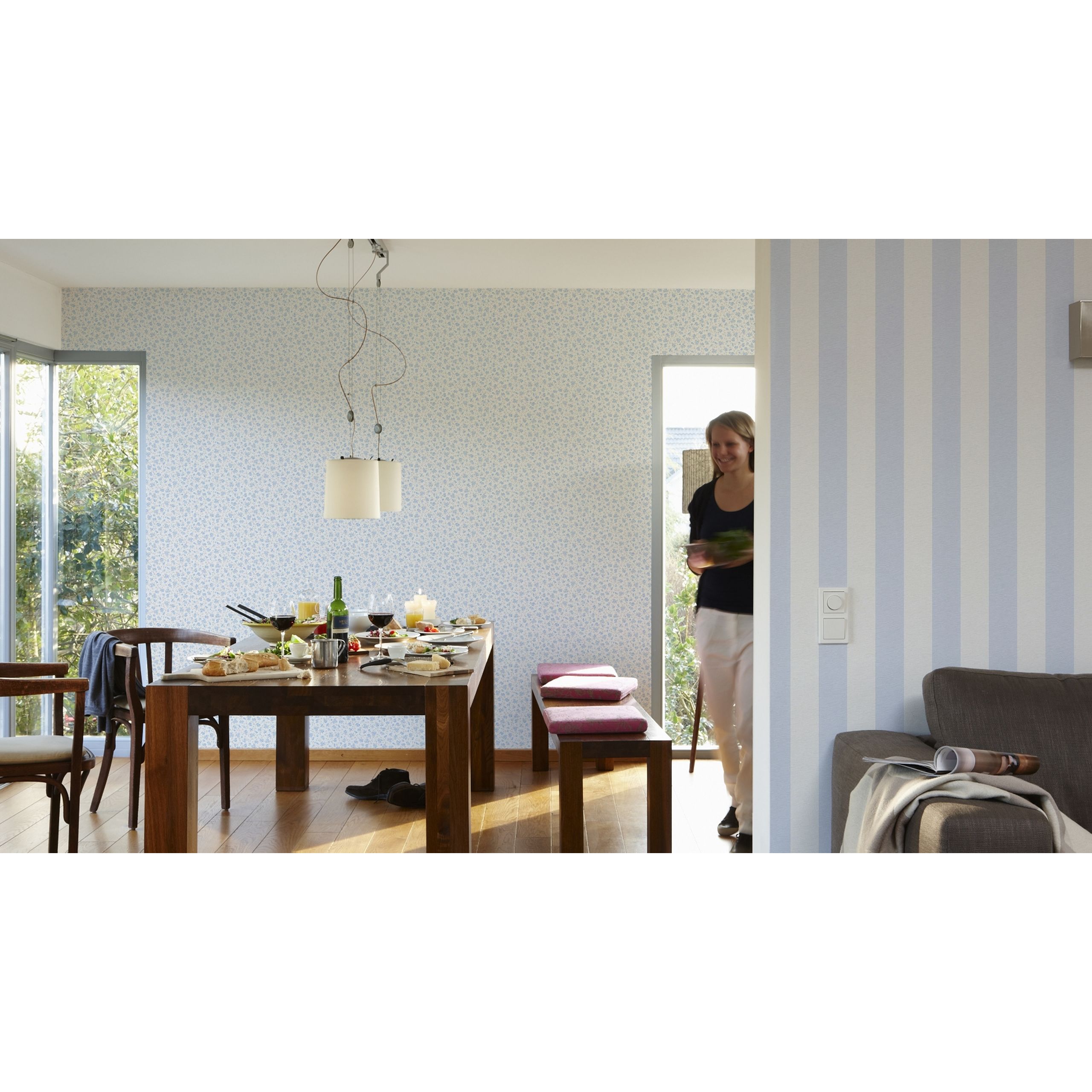 Ich finde, dass die Streifen in viele Wohnstile passen. Der Raum bleibt hell und wirkt schön. Die Lieferung kam schnell und die Ware hatte keine Schäden.