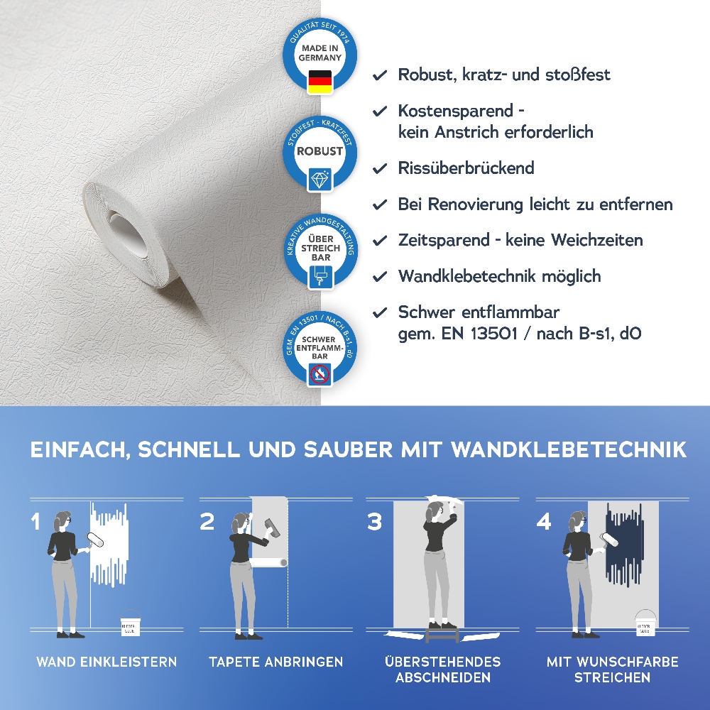 Alle wichtigen Informationen finden Sie auch auf dem Beipackzettel jeder Tapetenrolle.