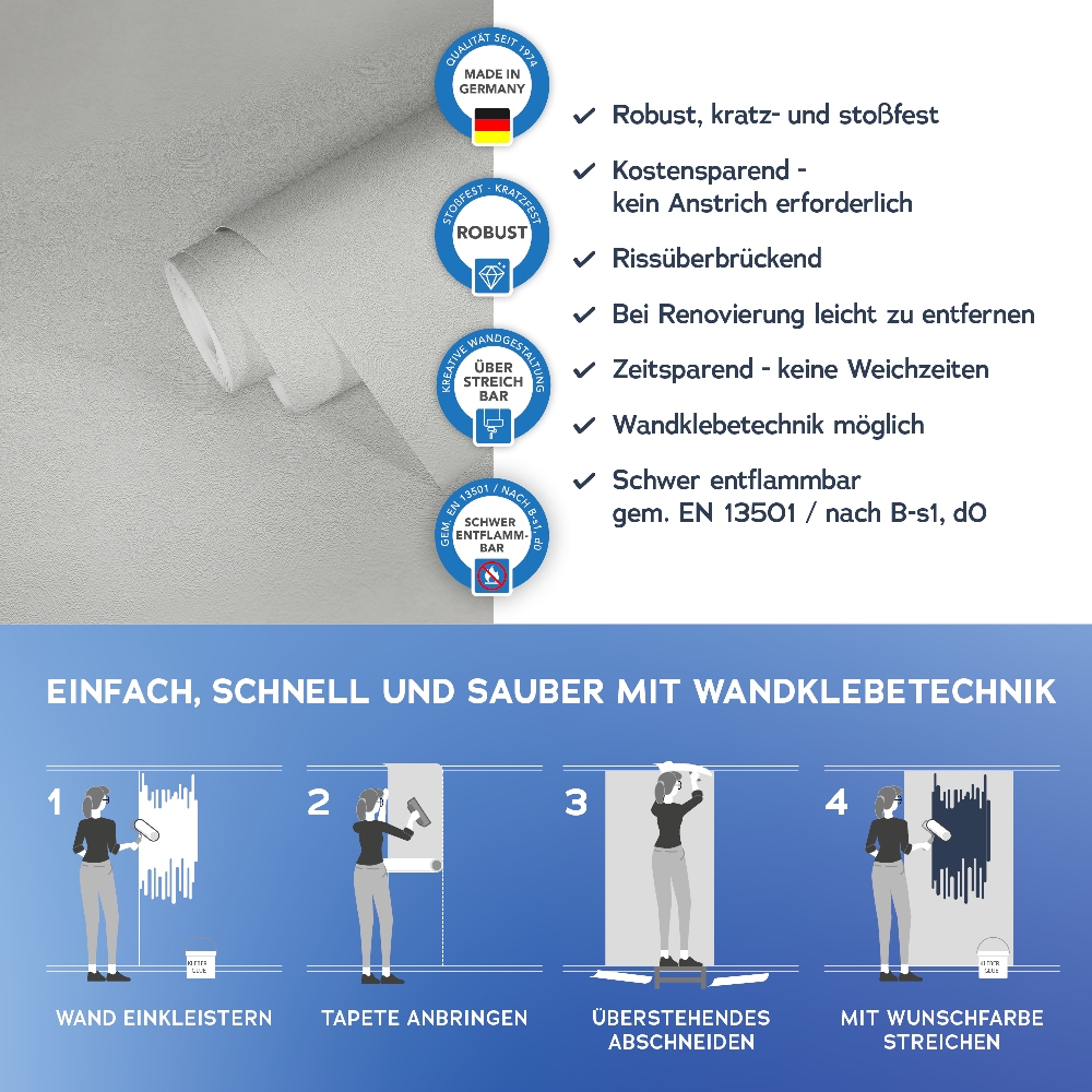 Alle wichtigen Informationen finden Sie auch auf dem Beipackzettel jeder Tapetenrolle.
