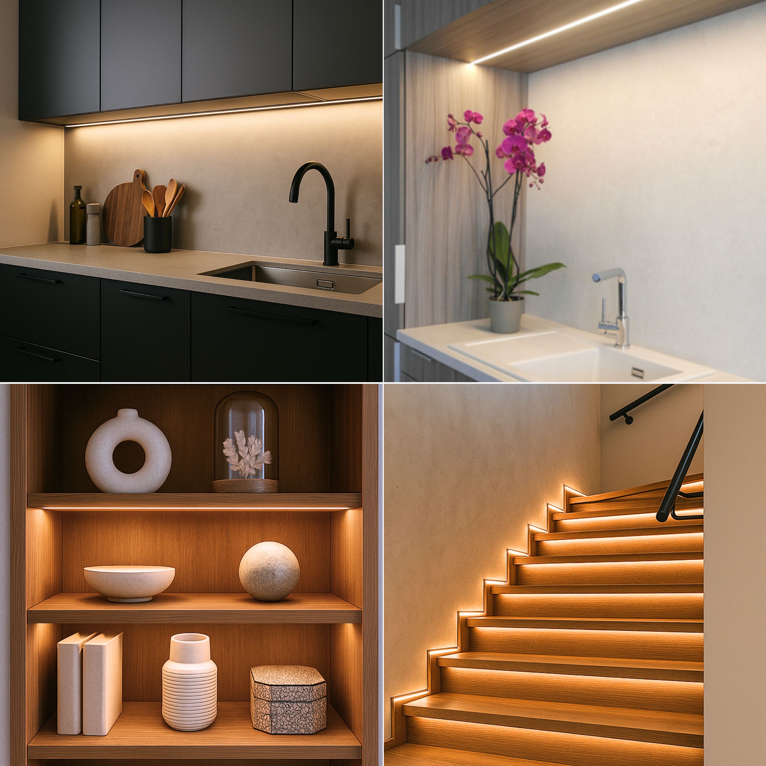 Unser LED Aluminiumprofil bringt nicht nur deine LED-Stripes perfekt zur Geltung, sondern sorgt auch für eine elegante, indirekte Beleuchtung und zwar genau dort, wo du sie brauchst. Ob unter Küchenhängeschränken, entlang von Treppenstufen oder hinter Möbeln: Das schlanke Profil schafft ein stimmungsvolles Ambiente, schützt deine LEDs zuverlässig und verleiht Räumen einen hochwertigen Look.
